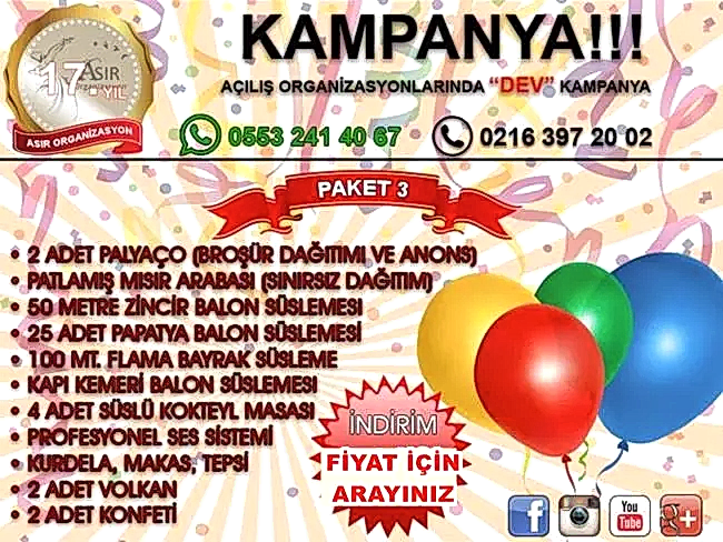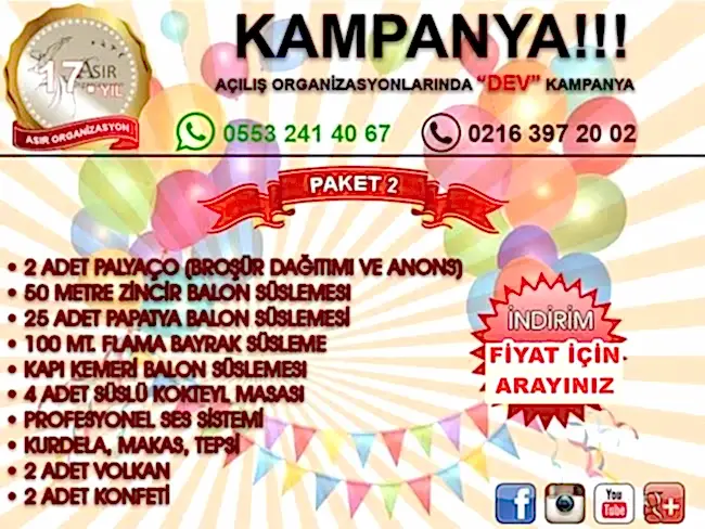 DİĞER MAĞAZA İŞ YERİ AÇILIŞ PAKET KAMPANYALARI VE AÇILIŞ ORGANİZASYON FİYATLARI İÇİN→→→ TIKLAYINIZ